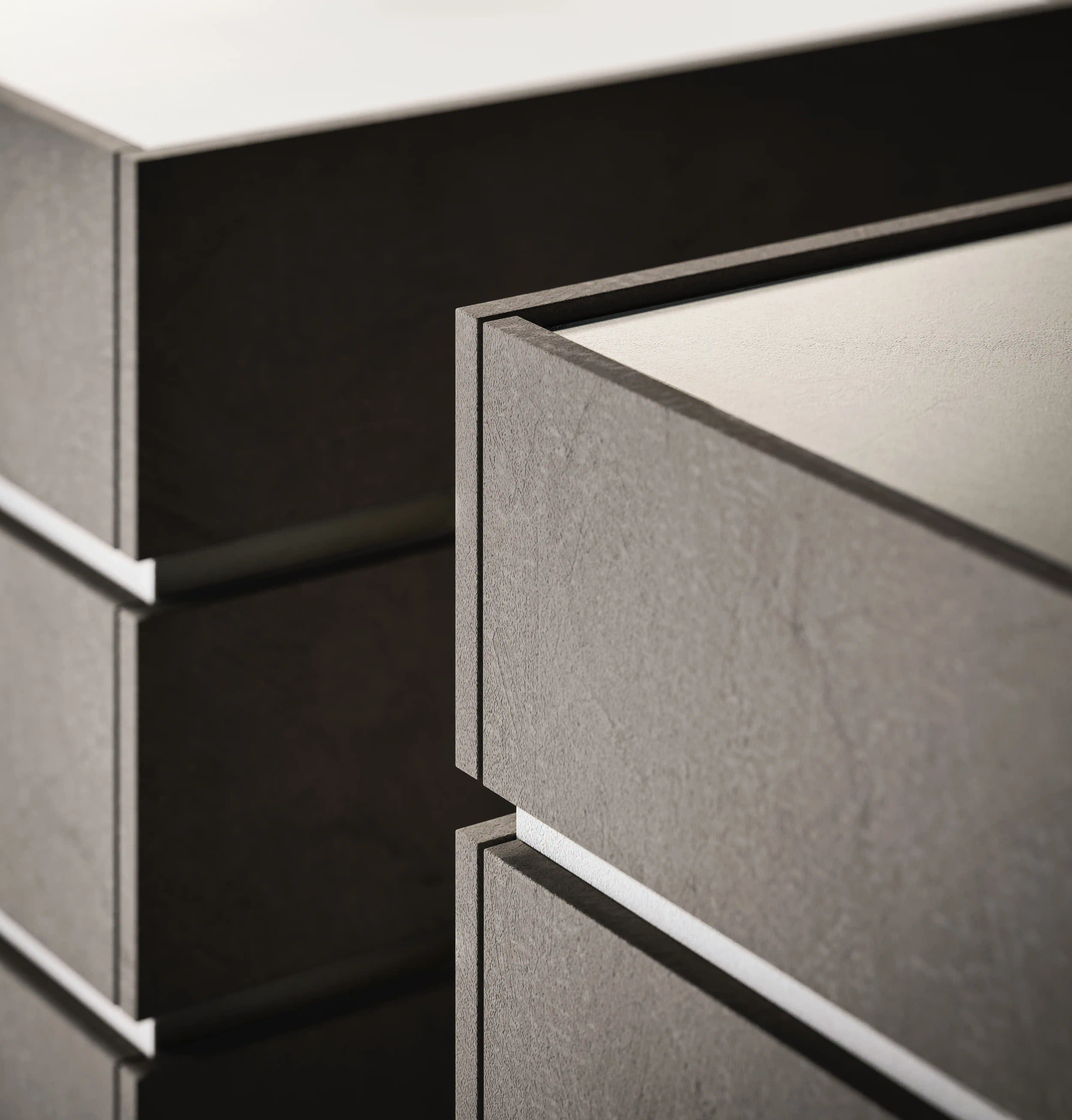 The single drawers of the Filo line are also available in a modular version, elements that give life to minimal, monolithic or misaligned volumes capable of furnishing the bedroom space, but which also lend themselves willingly to various other settings, thanks to their essentiality and the possibility of using technical materials that make them multipurpose.