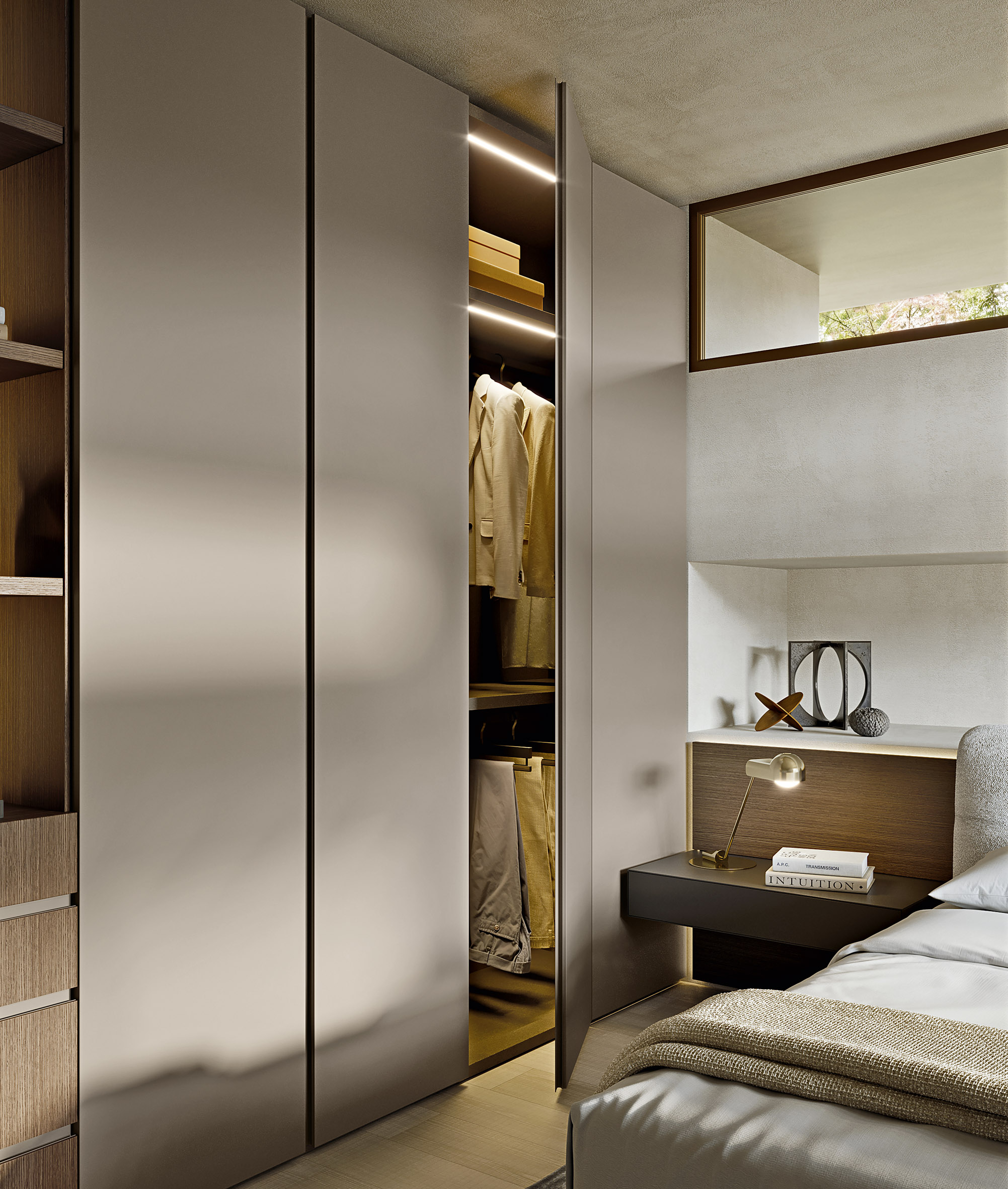 Whether you need a wardrobe for the bedroom, living room, or open space, our collection offers solutions suitable for every environment. The combination of high-quality materials and innovative design allows you to customize each wardrobe according to your needs. From modern and minimalist lines to more classic and sophisticated styles, every model is designed to combine practicality and aesthetics, ensuring impeccable organization and an unmistakable touch of style.