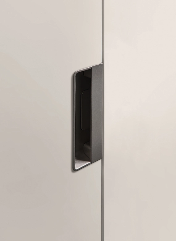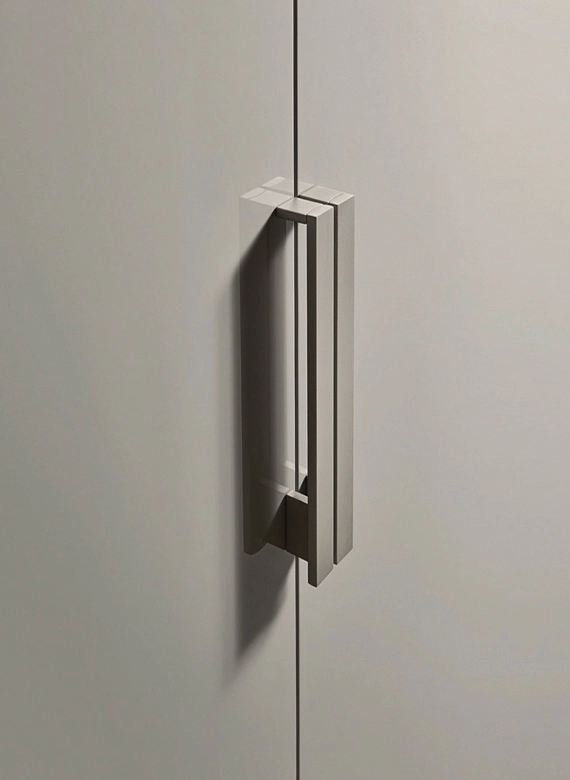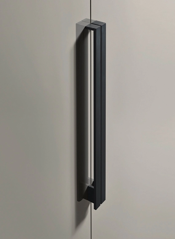 Mia: Unique Design and Tailored Proportions The Liscia door is a masterclass in essential design, embellished here by the Mia metal handle, available in two sizes: 300 mm or 600 mm. The doors offer extensive modular sizing, allowing for total flexibility. Choose a color-matched finish for a seamless, monochromatic look or a contrasting finish to create a bold, modern focal point.